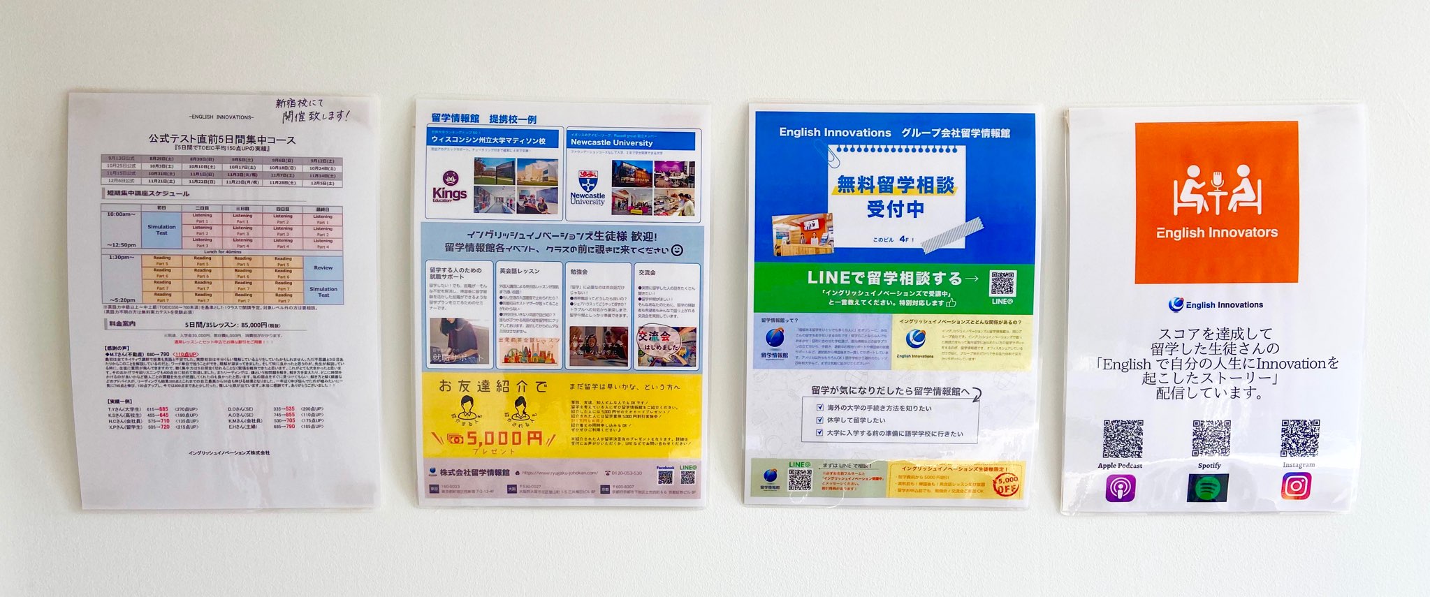 イングリッシュイノベーションズは、新宿・大阪・横浜校舎は3つとオンライン校を運営しています。