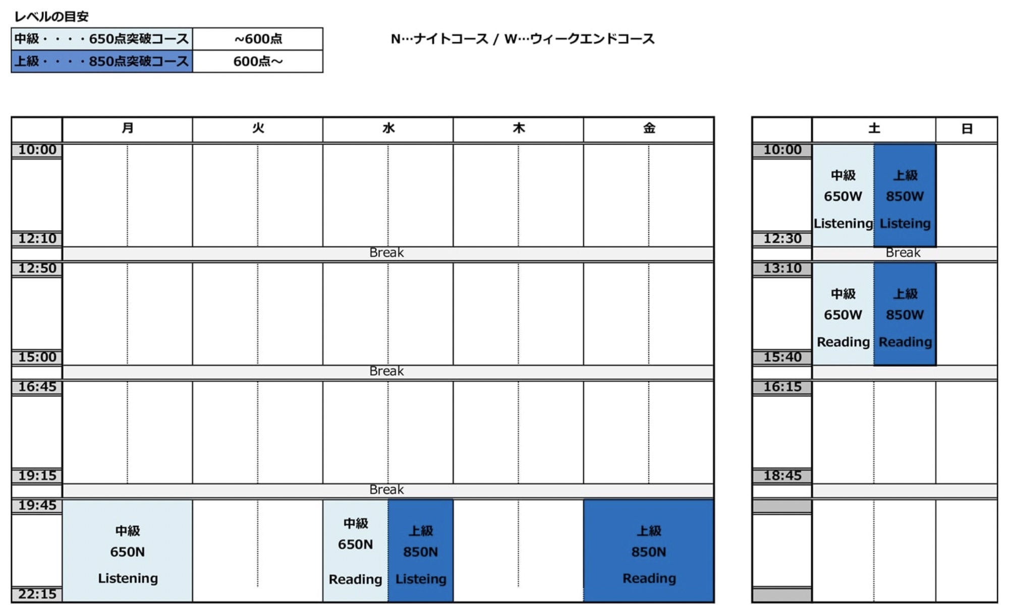 また、650点突破コース・850点突破コース共に振り替えという制度もございますので、曜日などで迷われている方もぜひご相談いいただければと思います。