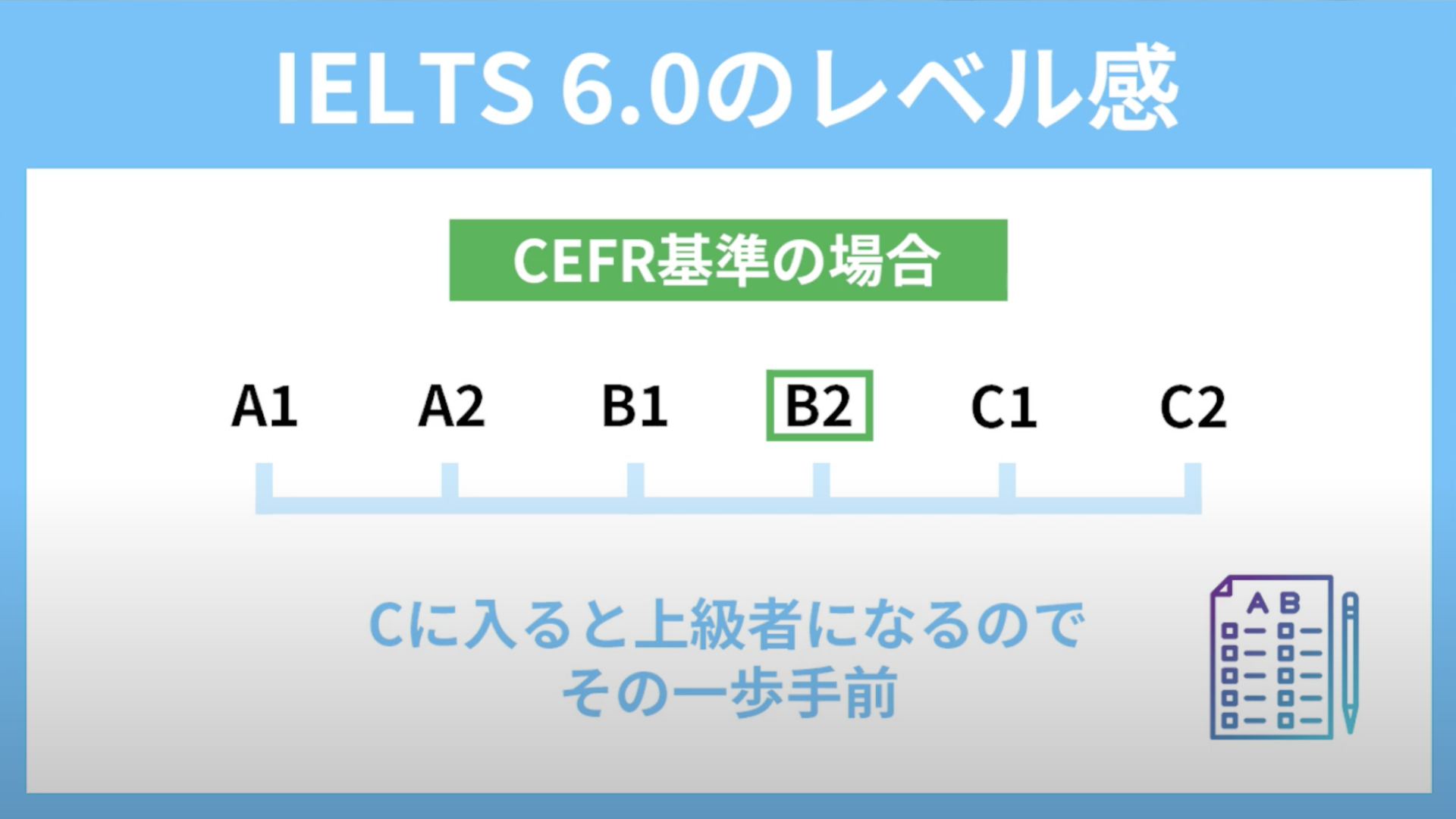 スコア6.0は、CEFR(ヨーロッパ言語共通参照枠)でいう「B2」レベルに相当します。