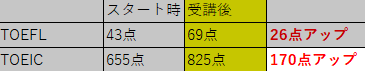 TOEFL、TOEIC共にこれだけ短期間での著しいスコアアップは素晴らしいです!
