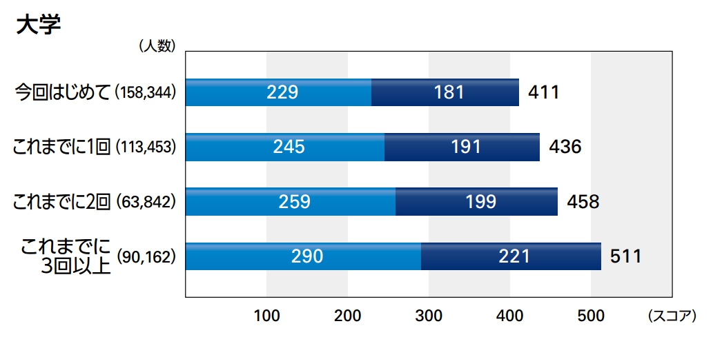 上の図でも試験を受ける度に受講者の平均スコアが上がっているのが分かります。