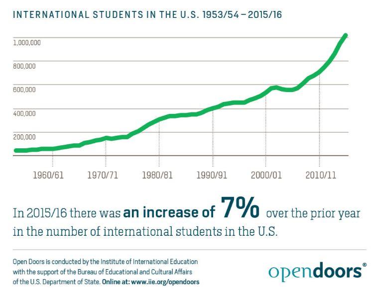 つまり毎年これだけの人数が学生ビザをとってアメリカに勉強に来ているのです。