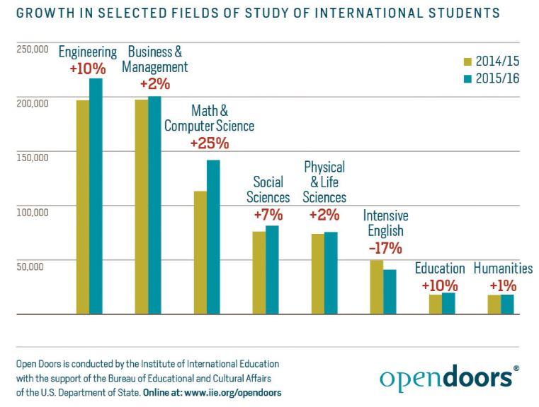 表をみるとEngineeringが最も多いですが、Math & Computer Scienceがプラス25%と高い数字を示しています。