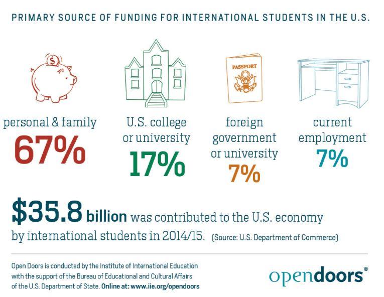 上記を見てみると、全体で358億ドル。つまり4兆円以上費用を留学生から集めているんですね。