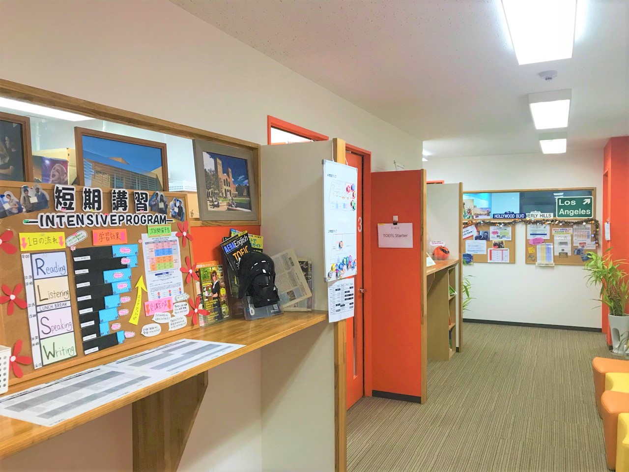 実は、共同オフィスでは留学情報館という留学エージェントさんがおり、留学に興味がある方がそのまま相談にしにいったりされます!TOEIC/TOEFL/IELTSの勉強に加えて、留学のご相談までできてしまう施設なんです。