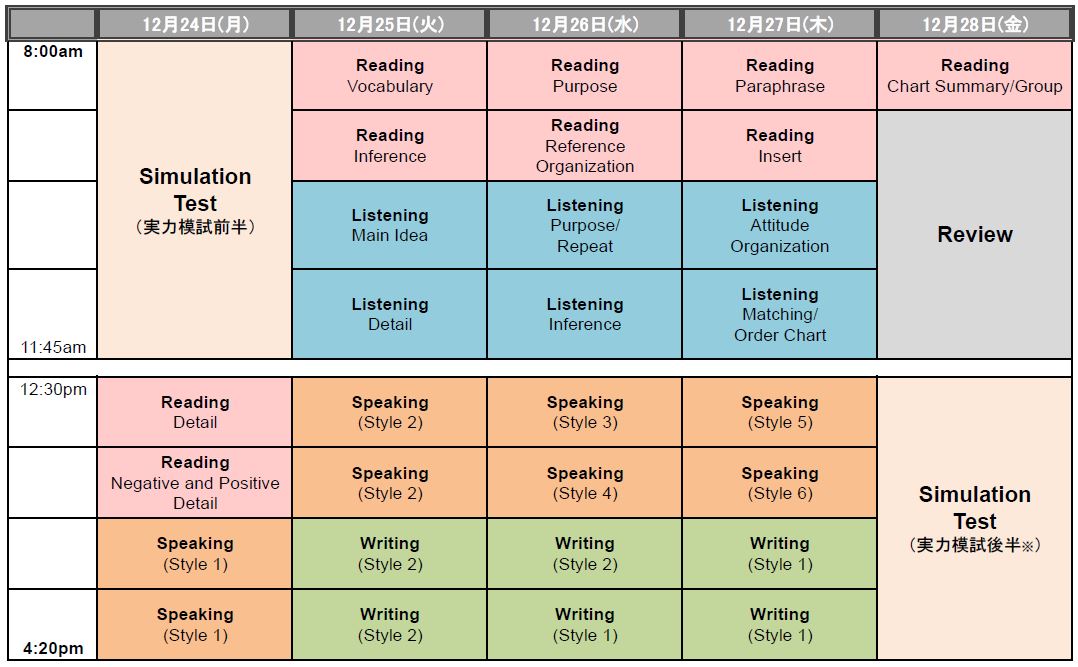2018年の最後をTOEFLのスコアアップで締めくくれる日程となっております。