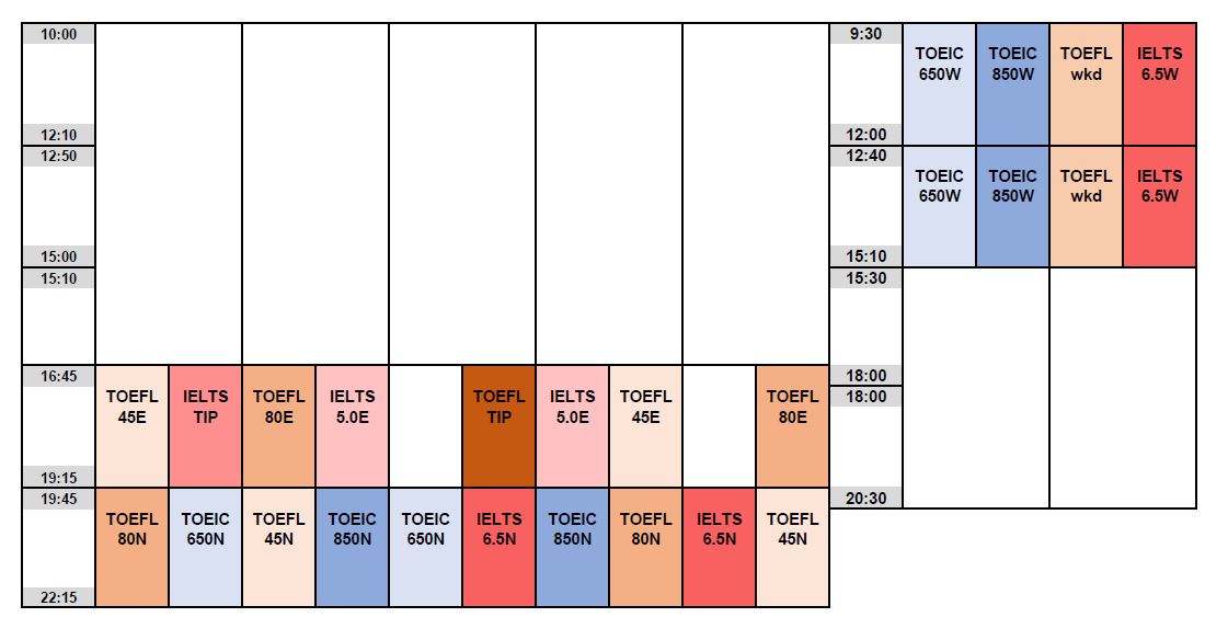 TOEIC、TOEFL、IELTSコース開講をしており、すでに70名以上の生徒様は勉強をされています。