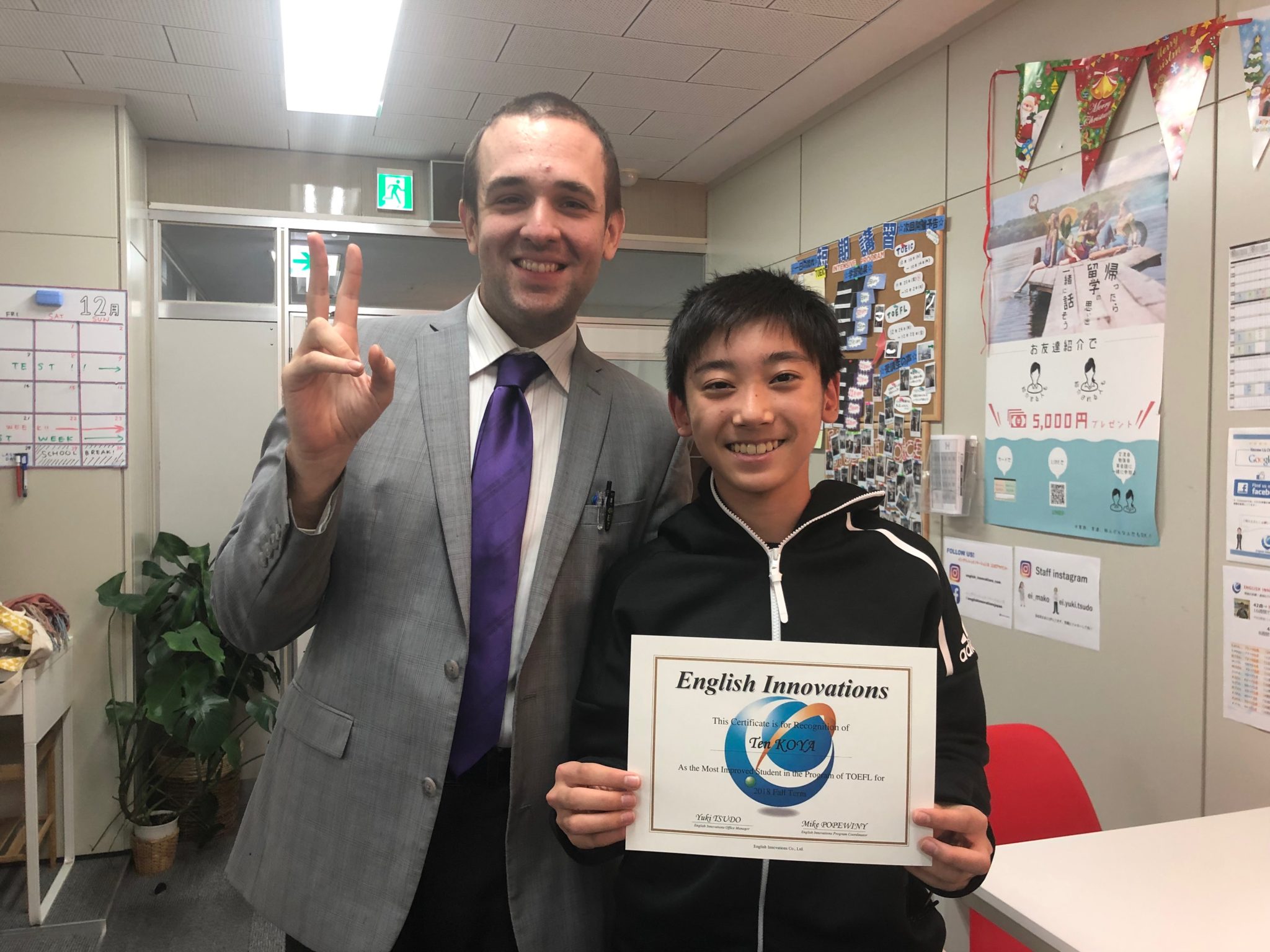 中学2年生、13歳という若さで将来を見据えてTOEFLの勉強をするためにイングリッシュイノベーションズ大阪校に通い出しました。