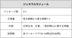 上記でも説明した通り、リーディングはアカデミックとジェネラルで内容が違います。