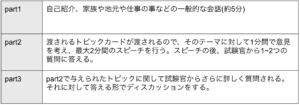 スピーキングの試験時間は約10~15分で、インタビュー形式となります。このインタビューは録音されていて、採点をする際に使用されます。