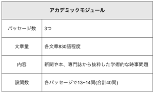 アカデミックモジュールとジェネラルモジュールでは、試験の用途が違うように問題の内容も少し違います。