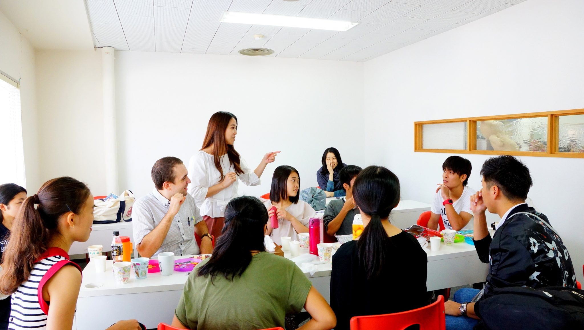 学校に集まり、ライテイングの交換をしたり、スピーキングを練習しあったり
